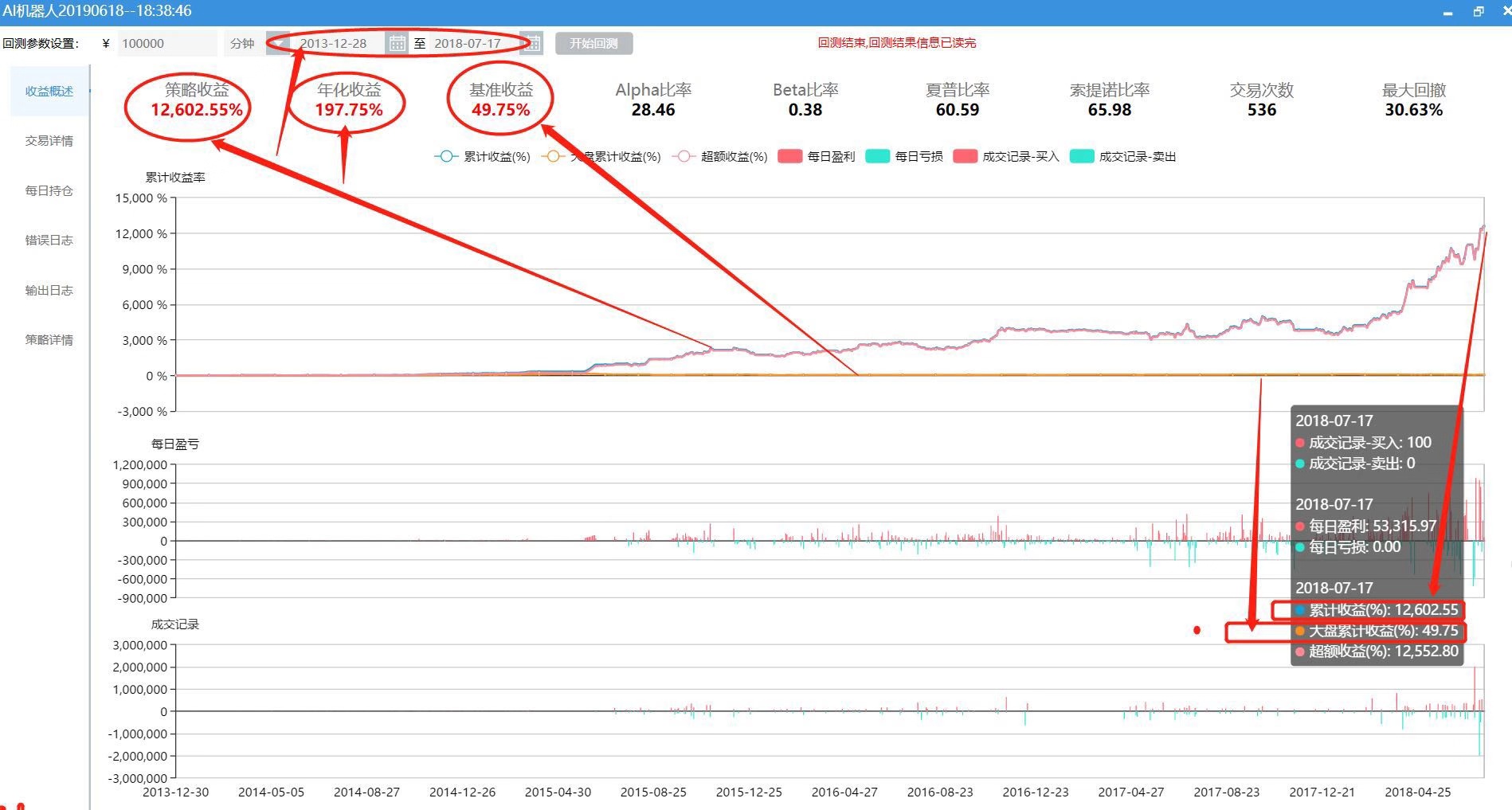 盈首AI黑科技,用科技赋能证券投资交易,用全自动交易替代传统落后的手工交易,推动证券市场稳定健康发展。首创无需编程人人皆可自动交易的炒股机器人,可以把用户最好的盈利模式、操作方法设置为全自动交易量化模型,能让你在第一时间及时规避大盘的任何一次明显的下跌波段,能让你第一时间及时捕捉市场盈利的机会,让AI机器人按照你设定的思想自动执行交易,从此炒股、上班两不误,既能大幅提高你的投资收益率、彻底解放你的生产力,又能极大地提高你的生活质量!如下面这些K线图,我们按照今天盘后选出,明天早上按照今天的收盘价买入,涨8%止盈,跌6%止损,这样只需输入该股票K线图上的8个数据,就可以回测该K线型态的股票过去几年的历史年化收益率,客户可以回测很多个,然后挑选历史年化收益率最高的K线型态设计为AI全自动交易模型,一次设定,机器人长期自动操作。