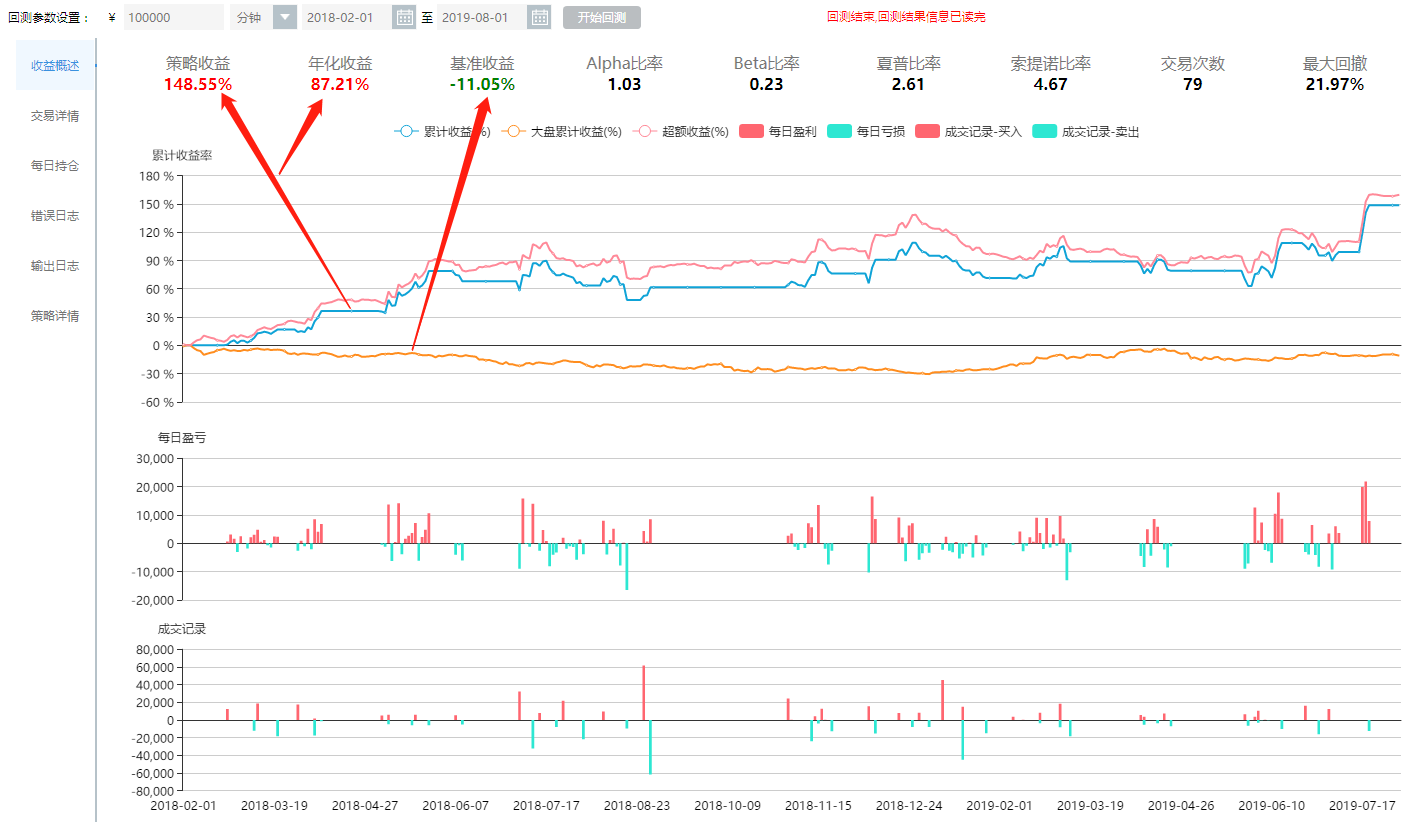 在2018.2.1-2019.8.1期间,大盘下跌11.05%,策略回测收益做到148.55%,年化收益高达87.21%。这就是AI结合金融带来的惊人效果。盈首AI彻底解决了广大投资者炒股没有非常专业知识、没有充足的分析研究时间、获利难大多数人总是亏损的三大痛点。用创新科技全自动交易取代落后的手工交易,获得理想的投资效果!未来,越来越多的投资者将受益于AI科技的快速发展,搭上“科技”这趟快速列车。
